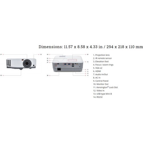 The PA503X has one HDMI input for connecting digital high-definition sources such as Blu-ray players and HD cable/satellite boxes. It also has two VGA inputs for analog sources, and its VGA output will allow you to daisy-chain multiple projectors or displays so they can all display the same source. Analog audio input and output and an onboard 2W speaker will ensure that audio accompanies your video. The projector includes a VGA cable and an IR remote control.